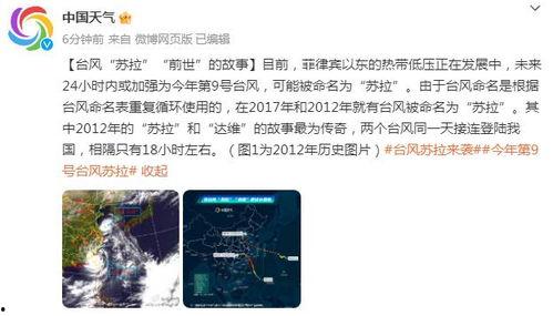 最近天气可是闹得沸沸扬扬的,台风“苏拉”这个名字在网络上可是火得一塌糊涂。大家都在议论纷纷,说这个台风来势汹汹,威力巨大。那么,台风“苏拉”最新爆料消息是真的吗?咱们一起来探究探究!